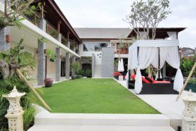 The villa consist of two storey building with 5 bedrooms, living dining room, open balcony hanging above the jacuzzi and private swimming pool. The house situated within a beautiful 1,750 m2 lush tropical garden.