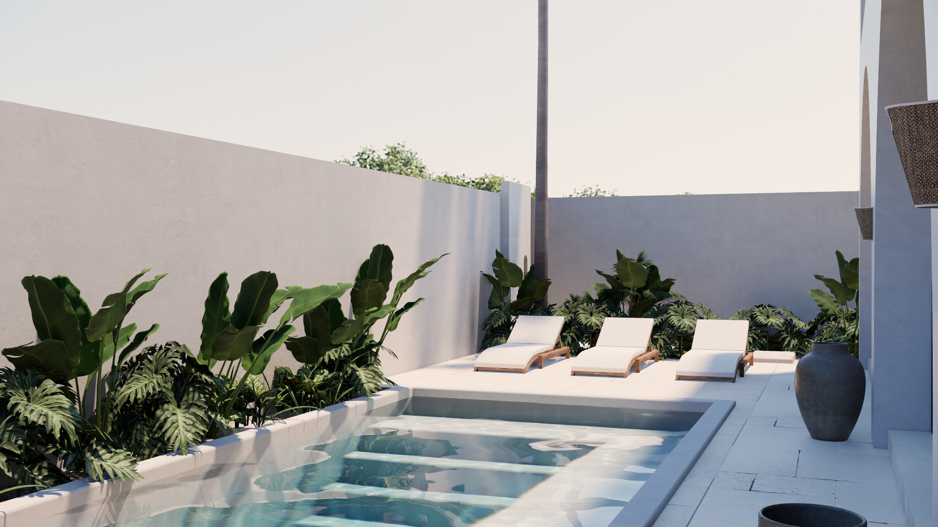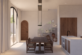 This project consists of 7 villa lots with an area of 1968 sqm, It consists of two types of villas, 2 bedroom villas and 3 bedroom villas. The 2 bedroom villa has an area of 200 square meters consisting of a living room, powder room, kitchen, master bedroom ,master bathroom and swimming pool. As for the 3 bedroom villa has an area of 300 square meters, consisting of a master bedroom, bedroom 1 and 2, living room, storage, kitchen and 3 bathrooms and swimming pool.